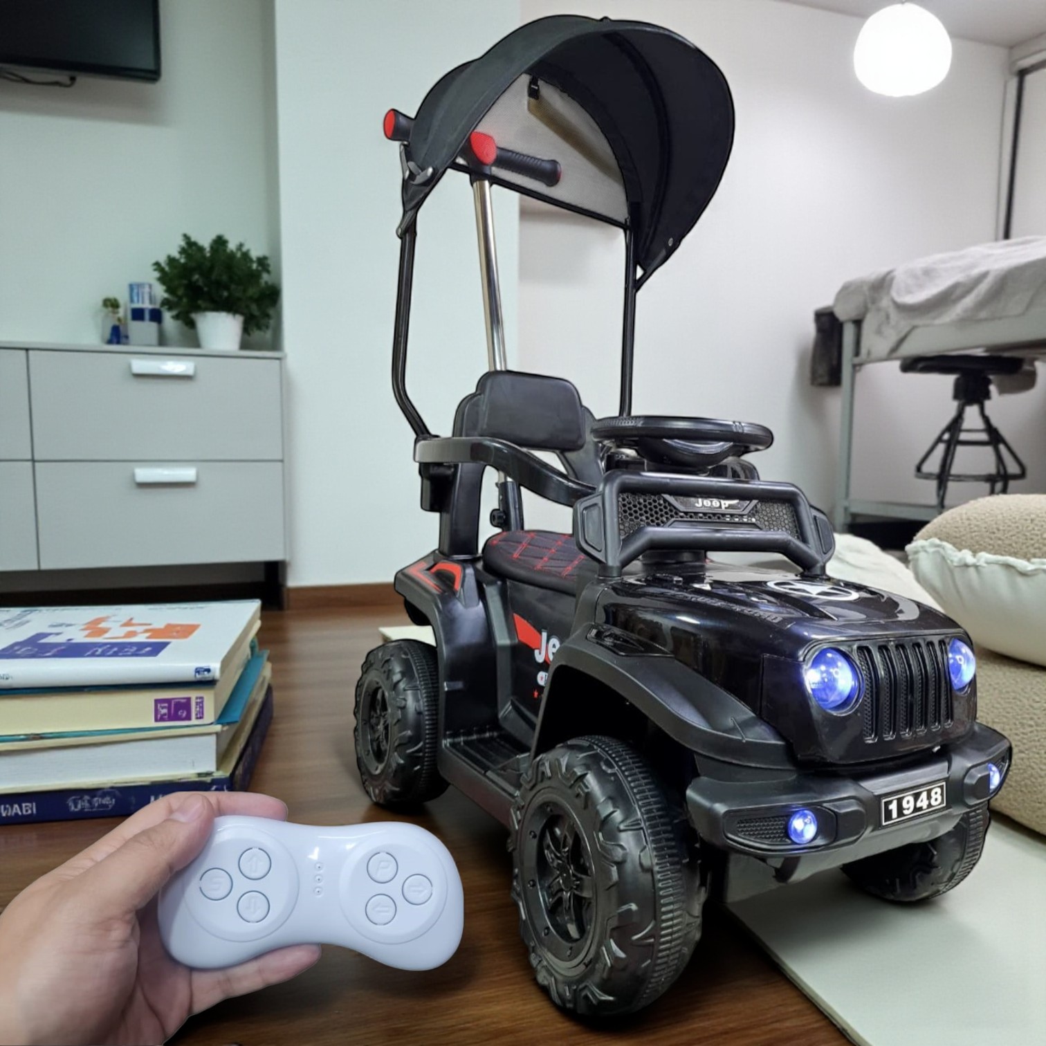 Carro Montable Bebe Paseador Musical Juguete Control 1-5 años JEEP NEGRO