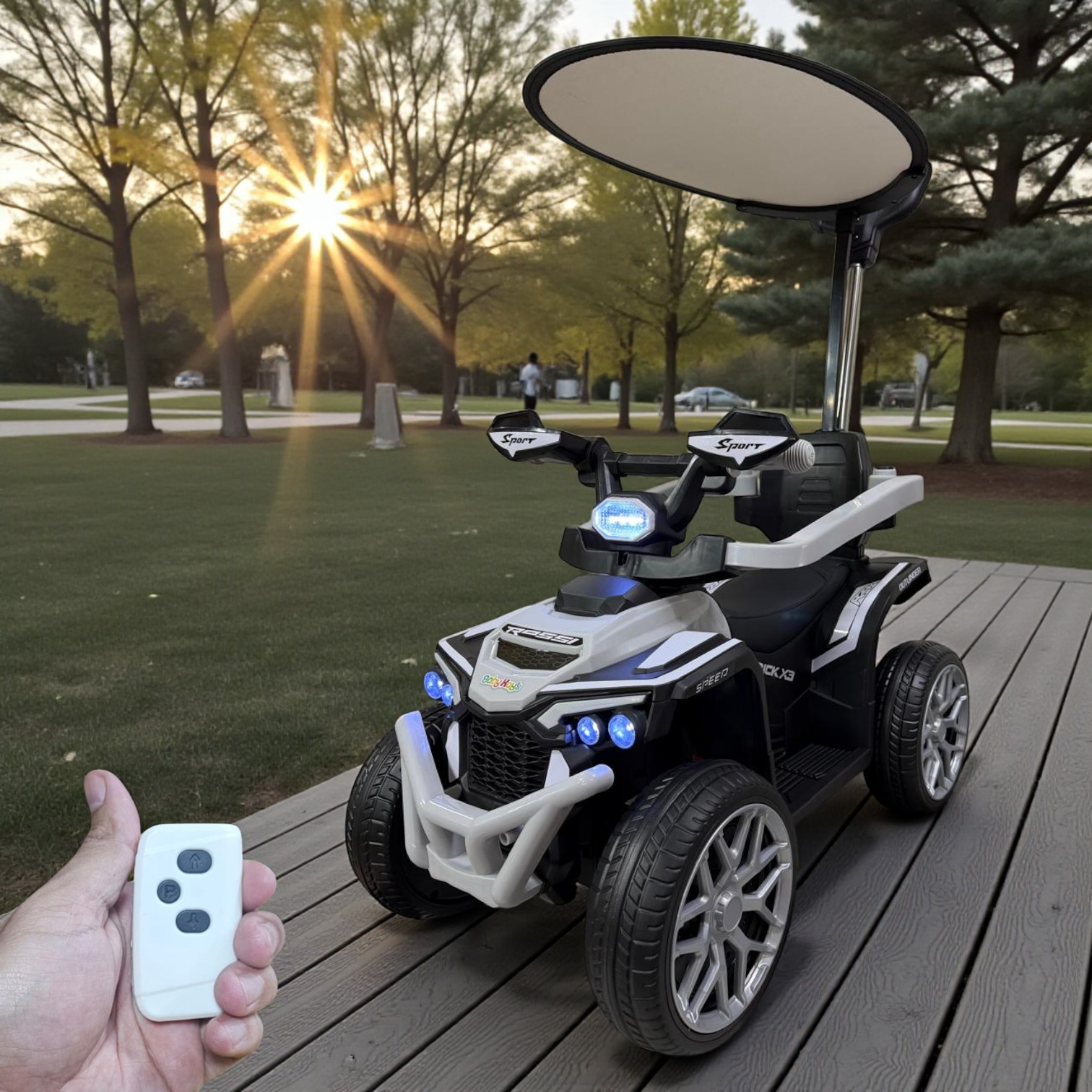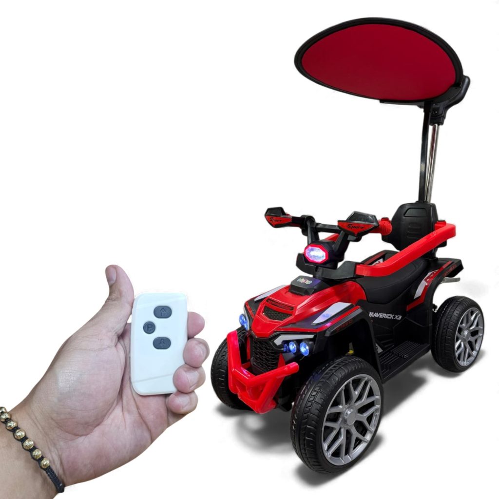 Pedal de aceleración para ser manejado por el niño (a), Barra de empuje con control de dirección,sistema de embrague para liberar motores cuando es empujado desde barra de empuje, Control remoto Inalámbrico 2.4 GH, BLUETOOTH para conectar música desde tu celular, Música incluida, Entrada USB y auxiliar, Barras de seguridad, Luces delanteras led, Aceleración gradual , 3 velocidades regulables desde el control remoto.