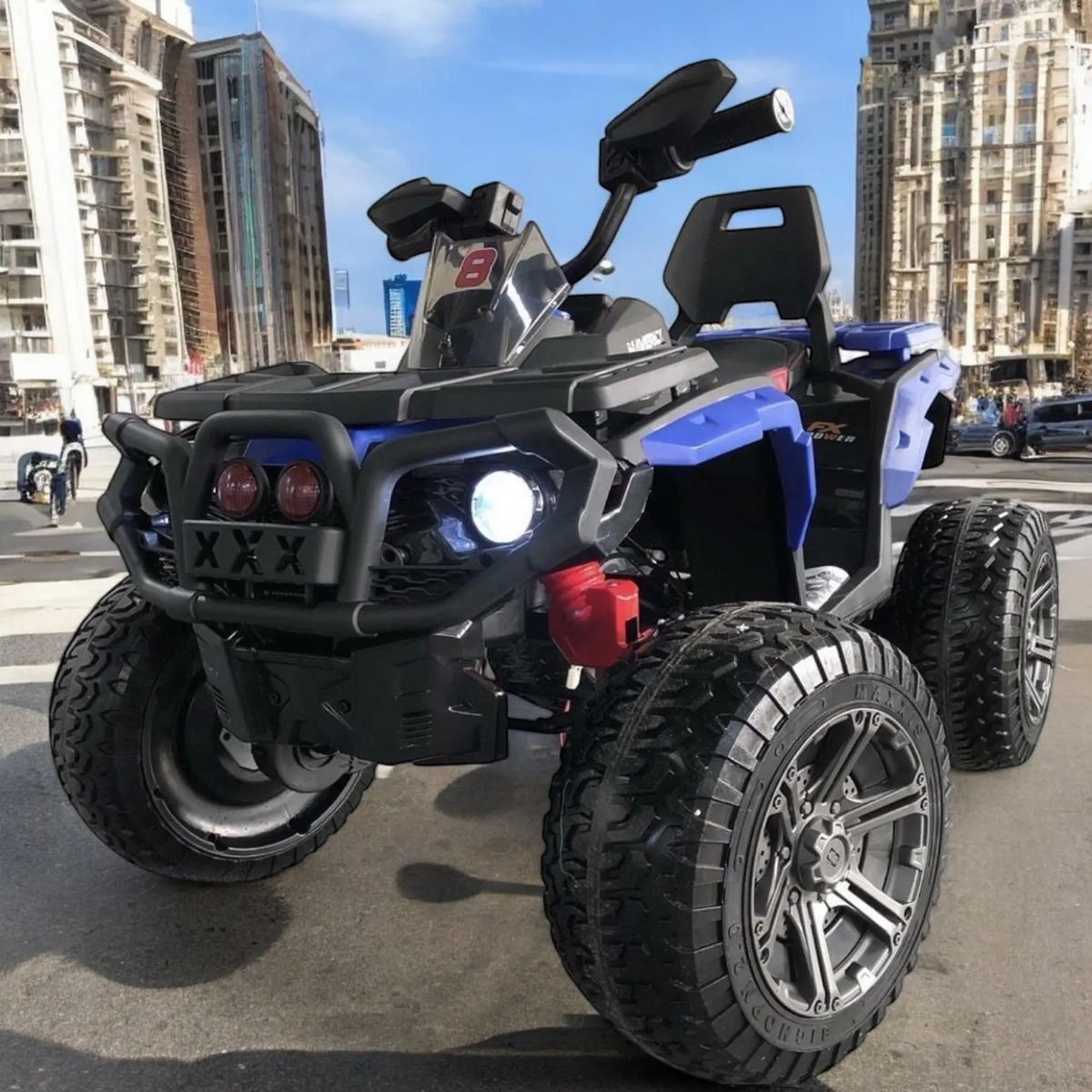 •Reproduce USB y micro SD, mp3, mp4, iphone, ipod, android Freno automático, marcha adelante y reversa Sistema de amortiguacion en las 4 llantas rines de lujo Trae su batería recargable y su cargador, Limite de peso 40KG.
