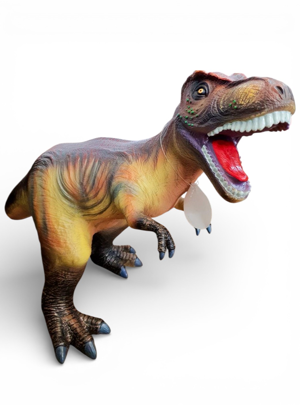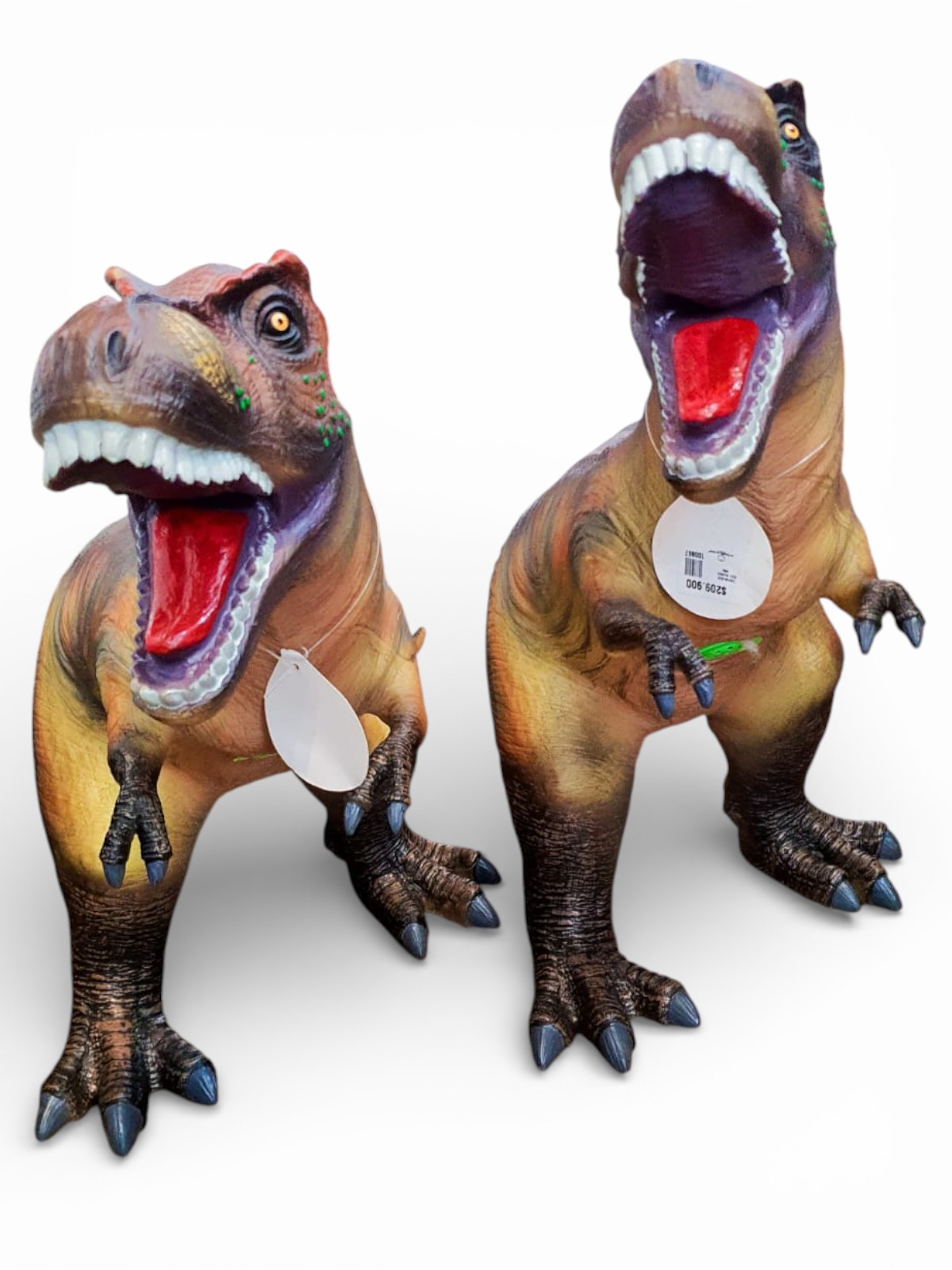 Este producto es una figura de dinosaurio tipo Tyrannosaurus Rex con un diseño realista y llamativo. La figura presentan una postura dinámica con la boca abierta, dientes bien definidos y una textura detallada que simula la piel de un reptil, lo que las hace muy atractivas para niños y coleccionistas. Están fabricadas en plástico resistente y de buena calidad, lo que permite un uso prolongado durante el juego sin deformarse fácilmente.