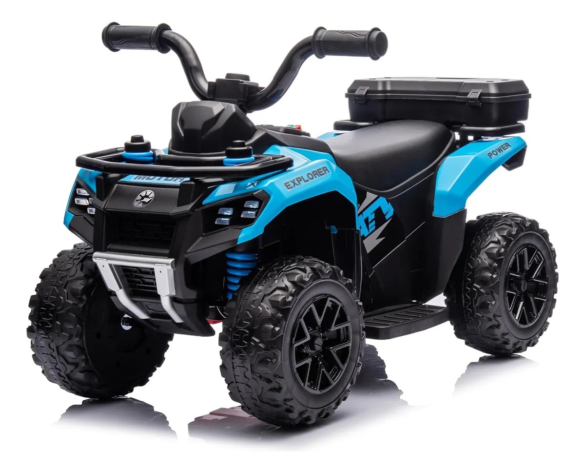Cojinería en cuero, encendido de Botón, pintura Divina, turbina de Humo Realista, control remoto,batería de 6 voltios, luces led , melodías infantiles, 1 cargador, puerto mp3 para conectarle tu celular para reproducir música, usb puerto para música.