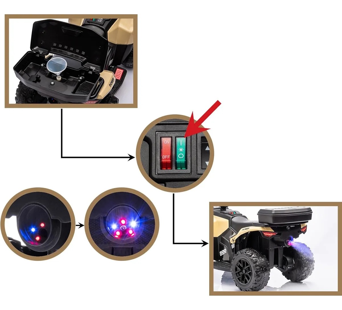 Efecto de Humo Realista con Vapor de Agua: ¡Una función única que simula neblina colorida! Rellena el depósito para mantener el efecto y agrega emoción al paseo.