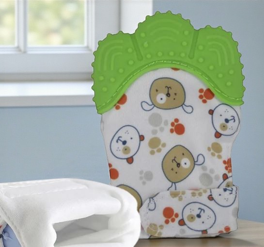 Nuestra manopla ayuda a mantener a los bebés en la dentición a salvo de rascarse, la saliva irrita su piel y disminuye la posibilidad de desarrollar ampollas por chuparse el dedo.
