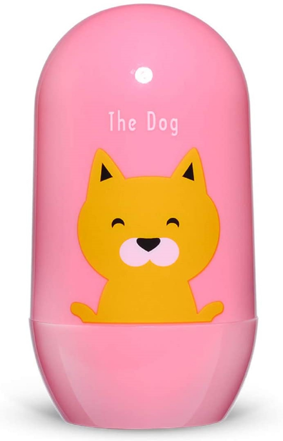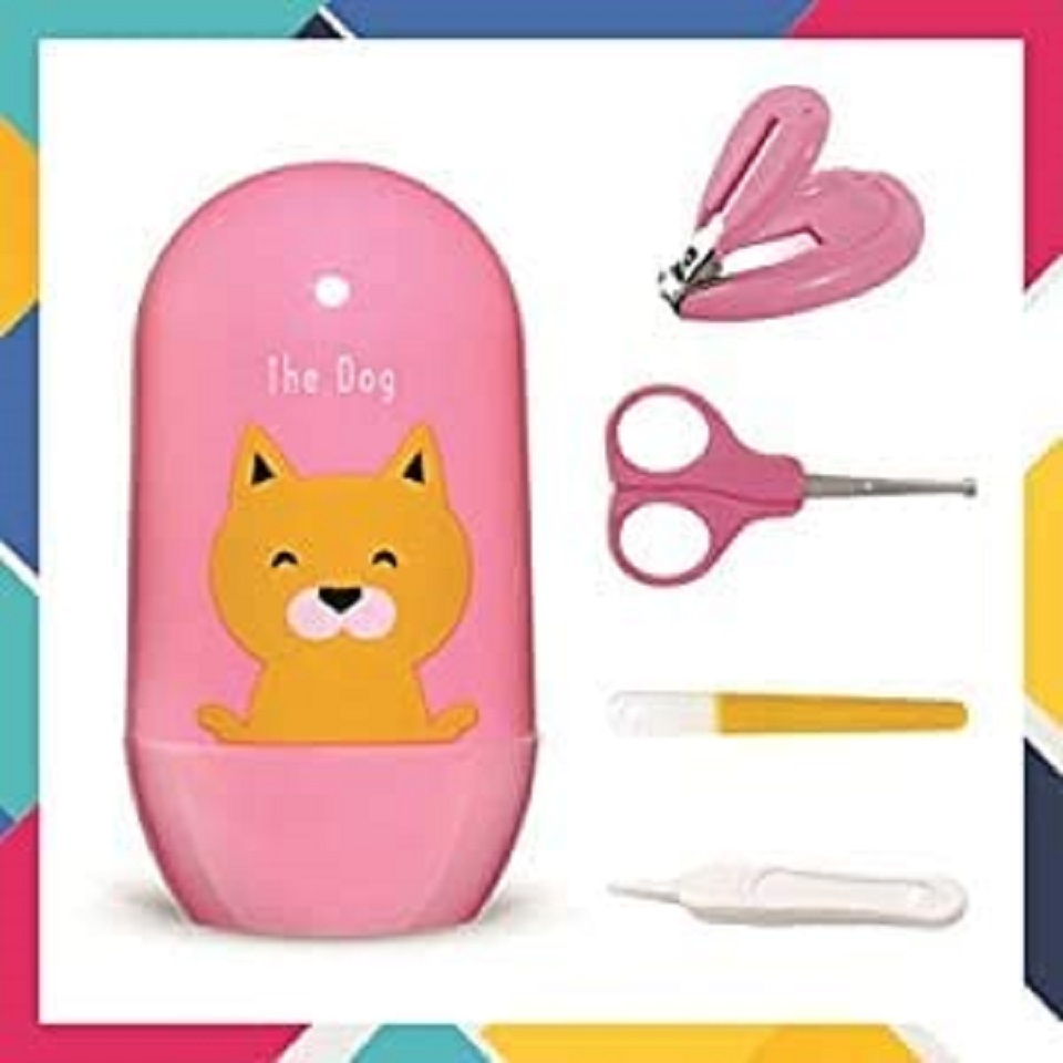Este producto es un kit de manicura 4 en 1 para bebés, diseñado específicamente para el cuidado seguro de las uñas de recién nacidos y niños pequeños. El estuche tiene un diseño de «huevo» o cápsula portátil con un motivo de perro.
