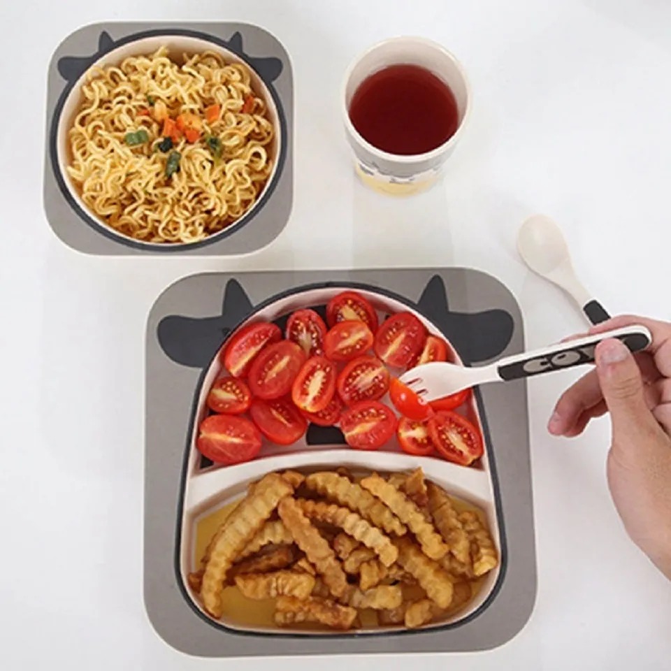 Set Vajilla Bebe Bambú Menaje 5 Pieza Biodegradable Infantil Vaca